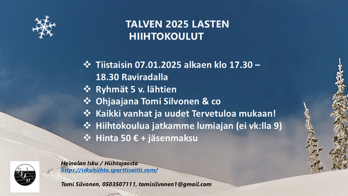 Jäsenmaksun voi maksaa Heinolan Iskun hiihtojaoston tilille FI50 5045 0620 1900 96